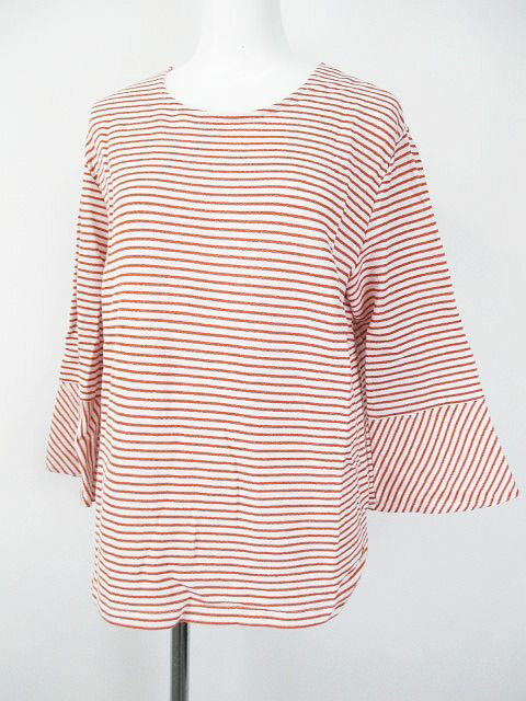 トランスワーク TRANS WORK ボーダー カットソー 長袖 ラメ 46 オレンジ系 ワンポイント 綿 コットン 三陽商会 レディース 【中古】【ベクトル 古着】 180726 ベクトル店