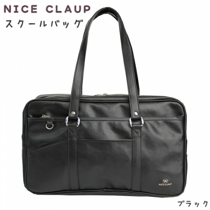 ナイスクラップ合皮スクール ブラック (NICECLAUP)合皮製スクールバッグ☆刺しゅうロゴ リボン 学生鞄 スクバ バック 中学 高校 女の子
